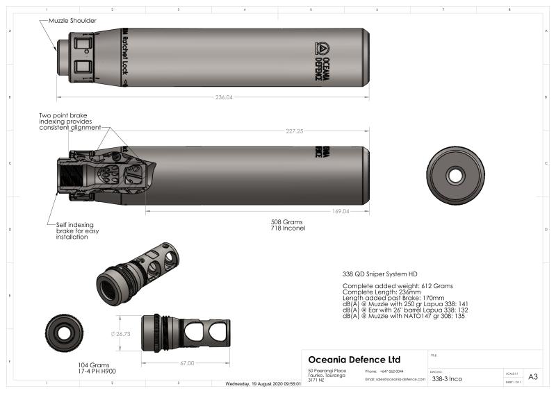 The 338 Ratchet Lock Titanium suppressor is designed from the attach system forward to provide the most accurate suppressor system on the market. The 338RL uses the latest flow technology for the best sound reduction in the least size and is designed for 338 and 300 magnum bolt action rifles. The suppressor will also perform well on 6.5 Creedmoor and 308. The 338 RL attaches to a 90 tooth muzzle device (Not Included) using two ratchets to provide 4 degree of rotational alignment. The suppressor also has a integrated heat shroud for reduced mirage which cools faster than the pressure skin.