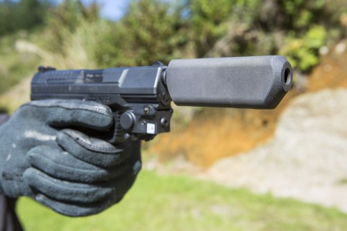 The Micro is a 9mm pistol suppressor that is designed to be as small as possible and provide sound levels at the shooters ear that are under 140 dB(A). Typically around 138dB dry with 147 or 124 grain ammo at the shooters ear, the design also allows for gell to be added and left holstered for long periods of time to provide 2 to 3 dB more sound reduction. This suppressor is primarily designed for duty use allowing for a small concealable suppressor to meet occupational health requirements.
