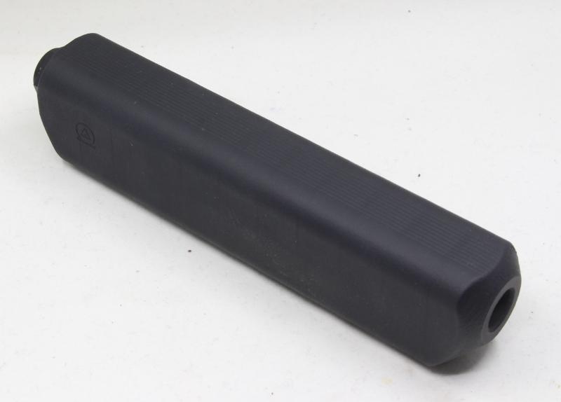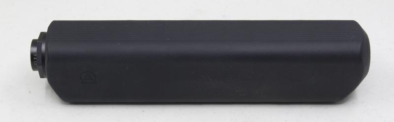 The UTU suppressor is a monolithic titanium suppressor designed with a Neilsen which allows it to be used with most of the common John Browning tilting barrel designs including linked (1911) or cam operated (Glock) pistols. The Neilsen is an assembly in the aft end of the suppressor that allows the gasses to push the suppressor forward while allowing the unimpeded rearward movement of the barrel and slide assembly using a stainless steel spring and titanium piston.